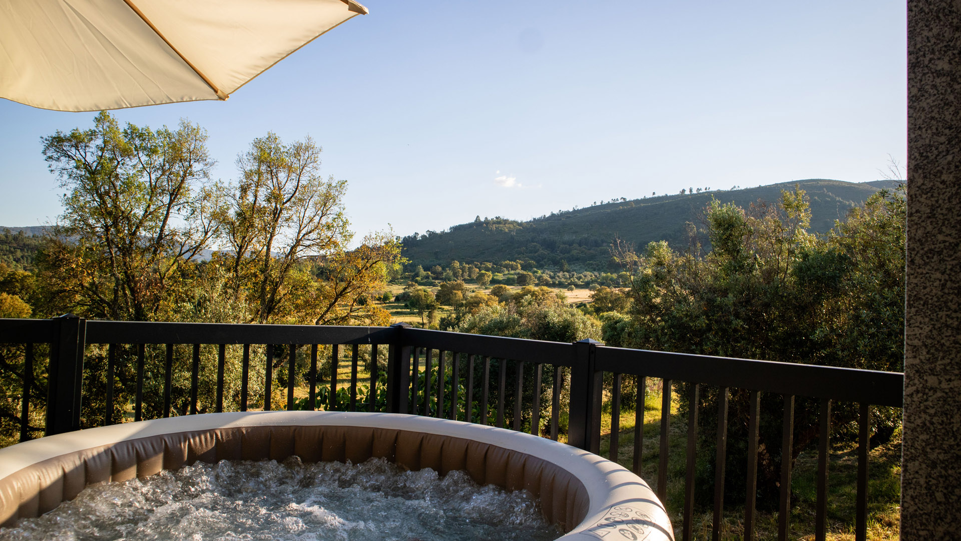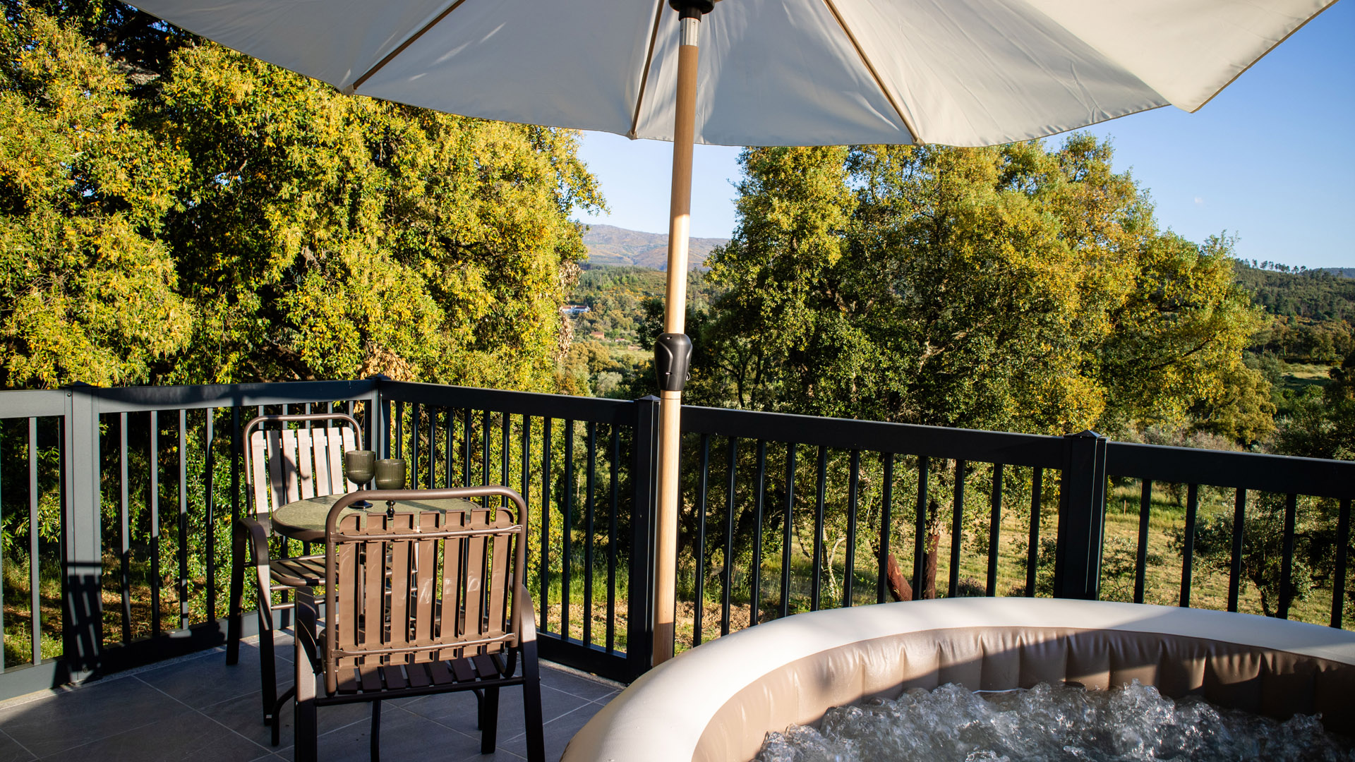 A Vila dos Sonhos oferece uma estadia espaçosa com kitchenet equipada, zona de estar e uma varanda com jacuzzi privativo para relaxar com vista sobre o vale. Ideal para casais ou estadias mais prolongadas, combina natureza e bem-estar num só lugar.